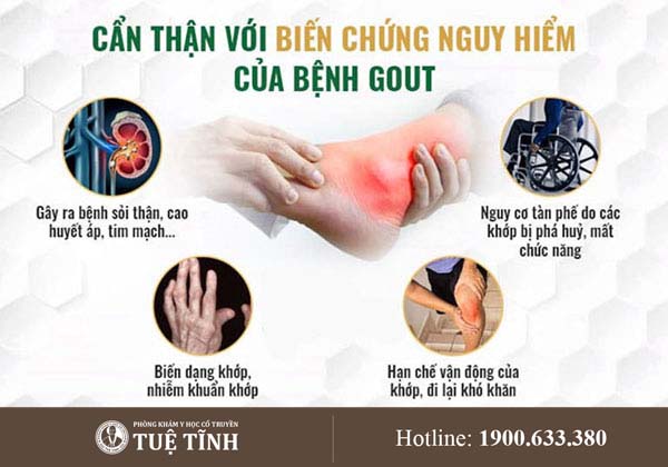 Nếu bệnh gout không được phát hiện và điều trị kịp thời, người bệnh có thể đối mặt với nhiều biến chứng nguy hiểm, ảnh hưởng nghiêm trọng đến sức khỏe: