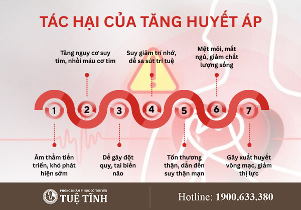 Nếu không được kiểm soát, tăng huyết áp có thể gây nhiều biến chứng nguy hiểm cho tim mạch, não, thận và mắt. Tình trạng này có thể gặp ở mọi lứa tuổi nhưng phổ biến hơn ở người trung niên và cao tuổi. Đây là bệnh lý mạn tính, cần được theo dõi và điều trị thường xuyên để hạn chế rủi ro.