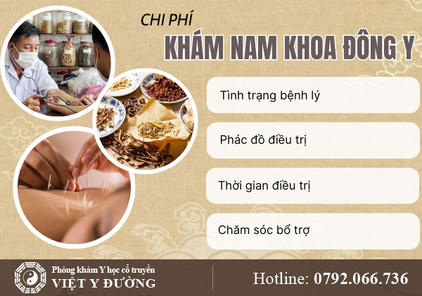 Chi phí thăm khám và điều trị nam khoa bằng Đông y phụ thuộc vào nhiều yếu tố, nên không thể áp dụng một mức giá chung cho tất cả bệnh nhân. Một số yếu tố ảnh hưởng gồm: