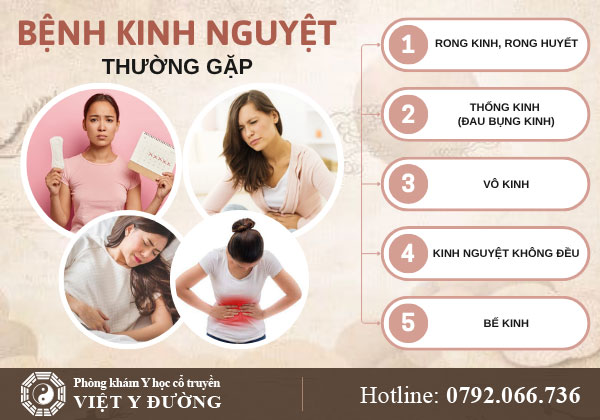 • Vô kinh: Mất kinh trên 3 tháng liên tiếp, thường kèm mệt mỏi, da xạm, người lạnh.