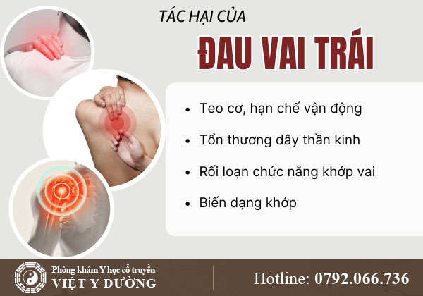 Đau vai trái lâu ngày khiến cơ yếu dần, giảm linh hoạt, nguy cơ teo cơ và cứng khớp.