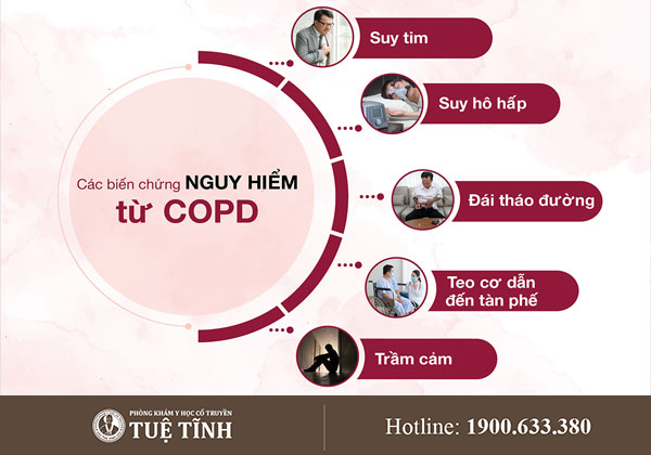 Trong Y học cổ truyền, tắc nghẽn phổi mạn tính kéo dài sẽ làm hao tổn phế khí, ảnh hưởng đến tỳ và thận. Khi khí huyết suy yếu, đàm ẩm ứ trệ, bệnh dễ dẫn đến nhiều biến chứng nguy hiểm, ảnh hưởng trực tiếp đến sức khỏe và chất lượng cuộc sống.