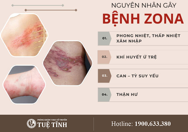 Bệnh zona thần kinh là tình trạng da nổi mụn nước thành từng dải, kèm cảm giác đau rát, ngứa ngáy, thường xuất hiện ở lưng, ngực, mặt hoặc tay chân. Theo Đông y, zona liên quan đến rối loạn khí huyết, can – tỳ – thận mất cân bằng và tà độc xâm nhập.