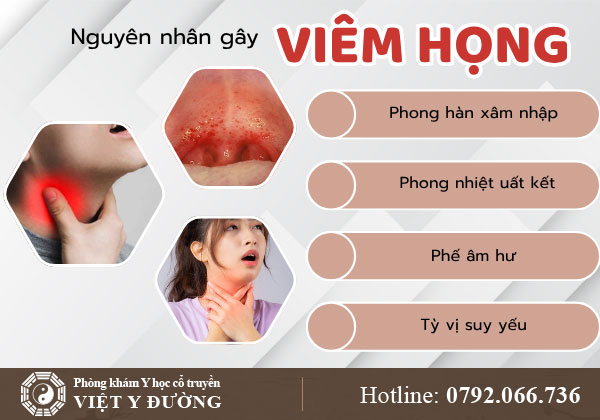 Viêm họng thường bắt nguồn từ tình trạng niêm mạc họng bị viêm nhiễm do vi khuẩn, virus hoặc nấm. Các yếu tố thuận lợi như thay đổi thời tiết đột ngột, môi trường ô nhiễm, hút thuốc lá, uống rượu bia, ăn đồ lạnh hoặc do trào ngược dạ dày – thực quản cũng dễ khiến bệnh khởi phát và tái đi tái lại.