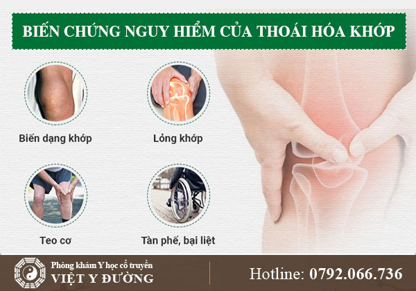 Thoái hóa khớp nếu không được can thiệp và điều trị sớm có thể dẫn đến rất nhiều các hệ luy nguy hiểm sau đây.