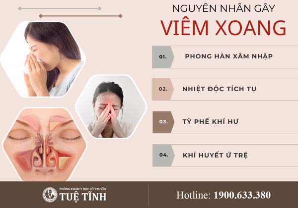 Nguyên nhân gây viêm xoang thường xuất phát từ việc niêm mạc mũi bị viêm nhiễm kéo dài do vi khuẩn, virus hoặc nấm. Các yếu tố thuận lợi như dị ứng, thời tiết thay đổi đột ngột, khói bụi, ô nhiễm môi trường, polyp mũi, lệch vách ngăn mũi hay sức đề kháng suy giảm cũng dễ làm bệnh khởi phát và tái đi tái lại.