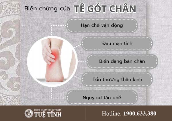 Tê gót chân tưởng chừng đơn giản nhưng nếu để kéo dài có thể dẫn đến nhiều biến chứng nguy hiểm. Triệu chứng ban đầu chỉ là đau nhức, tê buốt nhẹ, nhưng theo thời gian sẽ nặng dần và gây ảnh hưởng trực tiếp đến sinh hoạt.