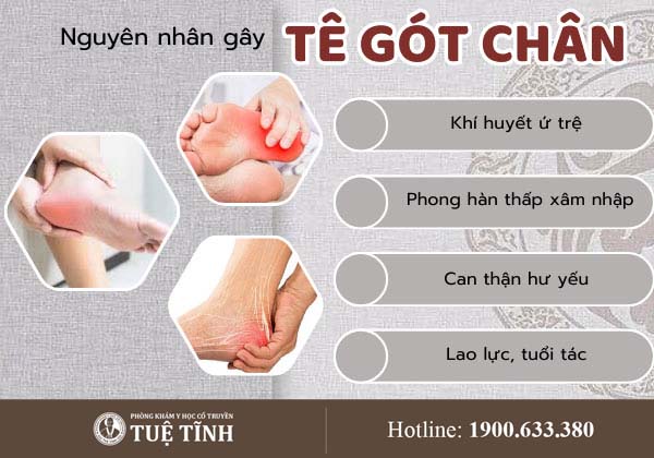 Theo Đông y, tê gót chân không chỉ đơn thuần do vận động nhiều hay đi lại sai tư thế. Đây là dấu hiệu cho thấy khí huyết trong cơ thể không được lưu thông, hoặc tạng phủ suy yếu gây ảnh hưởng đến gân cốt. Một số nguyên nhân phổ biến gồm: