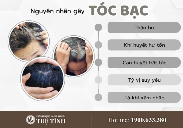 ↬ Tỳ vị suy yếu: Ăn uống kém, tỳ vị vận hóa kém, chất dinh dưỡng không đến được tóc, gây bạc sớm.