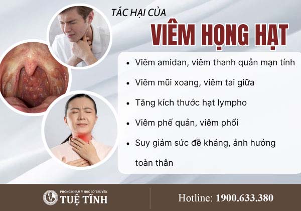Viêm họng hạt là bệnh lý mạn tính, dễ tái phát. Nếu chủ quan không điều trị kịp thời và đúng cách, bệnh có thể gây ra nhiều biến chứng ảnh hưởng nghiêm trọng đến sức khỏe: